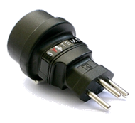 Excellent quality adapters, able to interface our mains Schuko terminated cables with sockets from all over the world, are now available. The six models listed cover almost all of the sockets used on the planet. The cost of each adapter is euro 20,00 .
