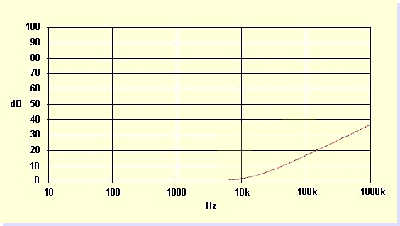 BlackNoise e-Spira - db attenuation at different frequencies. 50/50 ohm standard input/output impedance.